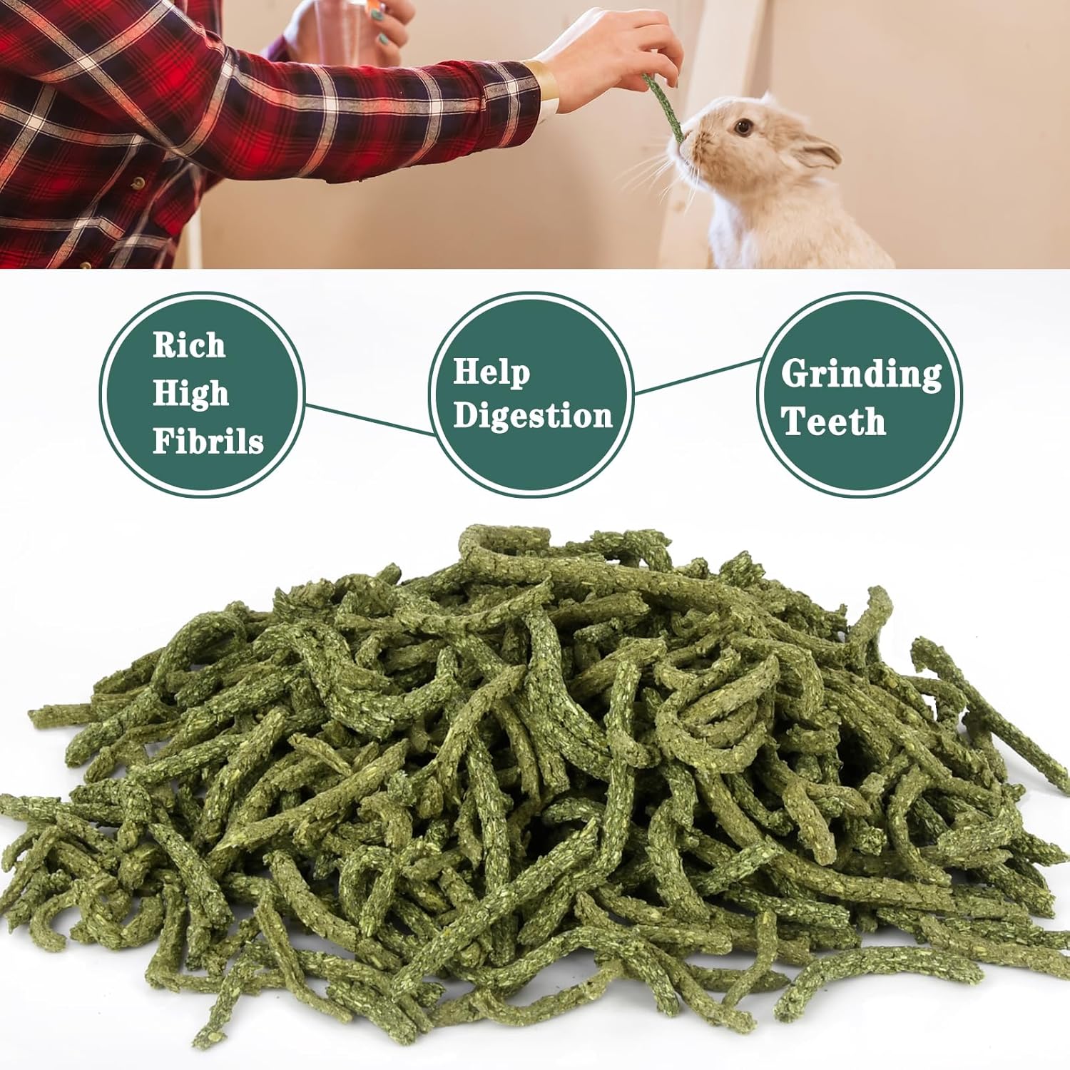 - 【Treats for Training】- Compared to common timothy pellets, it is thin but long, easy to control the amount of each feeding and avoid pet waste. New great treats can be used train your pet.