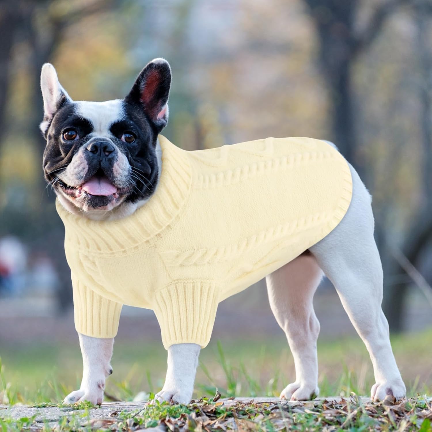 - THICK & WARM KNIT SWEATER: The dog's turtleneck pullover sweater is made of high density acrylic yarn that is comfortable, soft, warm and easy to care. The cable knit sweater is the cute winter clothes for your dog.