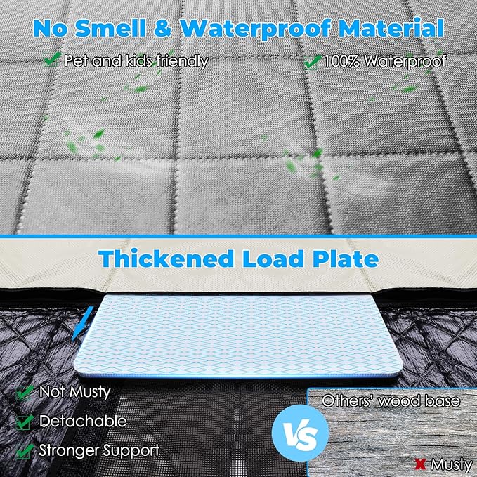 - No Smell Material: The dog car seat cover for back seat without terrible smell is friendly for pets and children. In an enclosed car space, smell-free design is also important to keep you focused and driving safely, but competitors ignore this. The thickened PP hollow board plate is more durable than others' wood base