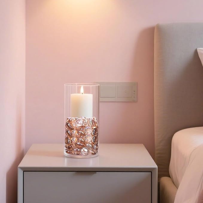 - Translucent Glass Pebbles - The light will shine through these pure and transparent glass marbles, the marbles will be shinning in the sun, these attractive flat marbles will be beautiful addition to floral arrangements, crafts, vases, candles, and so much more.