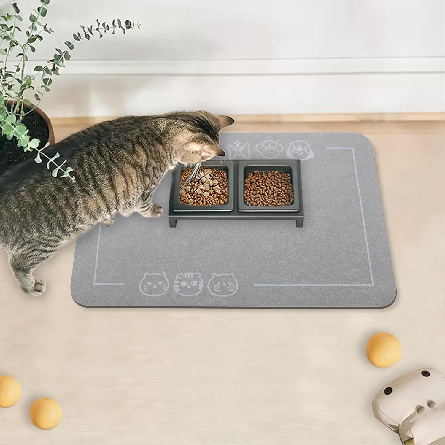 YCT Cat Pet Food Mat - Non-Slip Bottom Absorbent Quick Dry Feeding Mat for Dogs and Cats - Pet Supplies, 11.8"x18.1" Gray