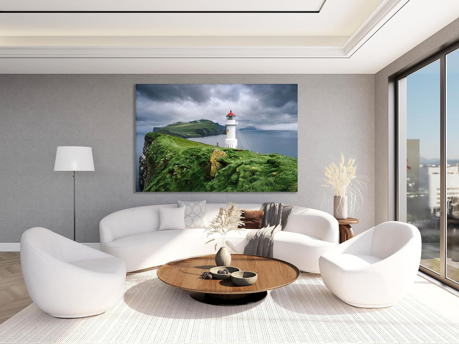 Nature Wall Art Prints - Ocean Forest Mountain Lake Canvas Landscapes - Small to Extra Large Living Room Bedroom Kitchen Bathroom Décor (Stormy Sky Lighthouse, 31L" x 47W")