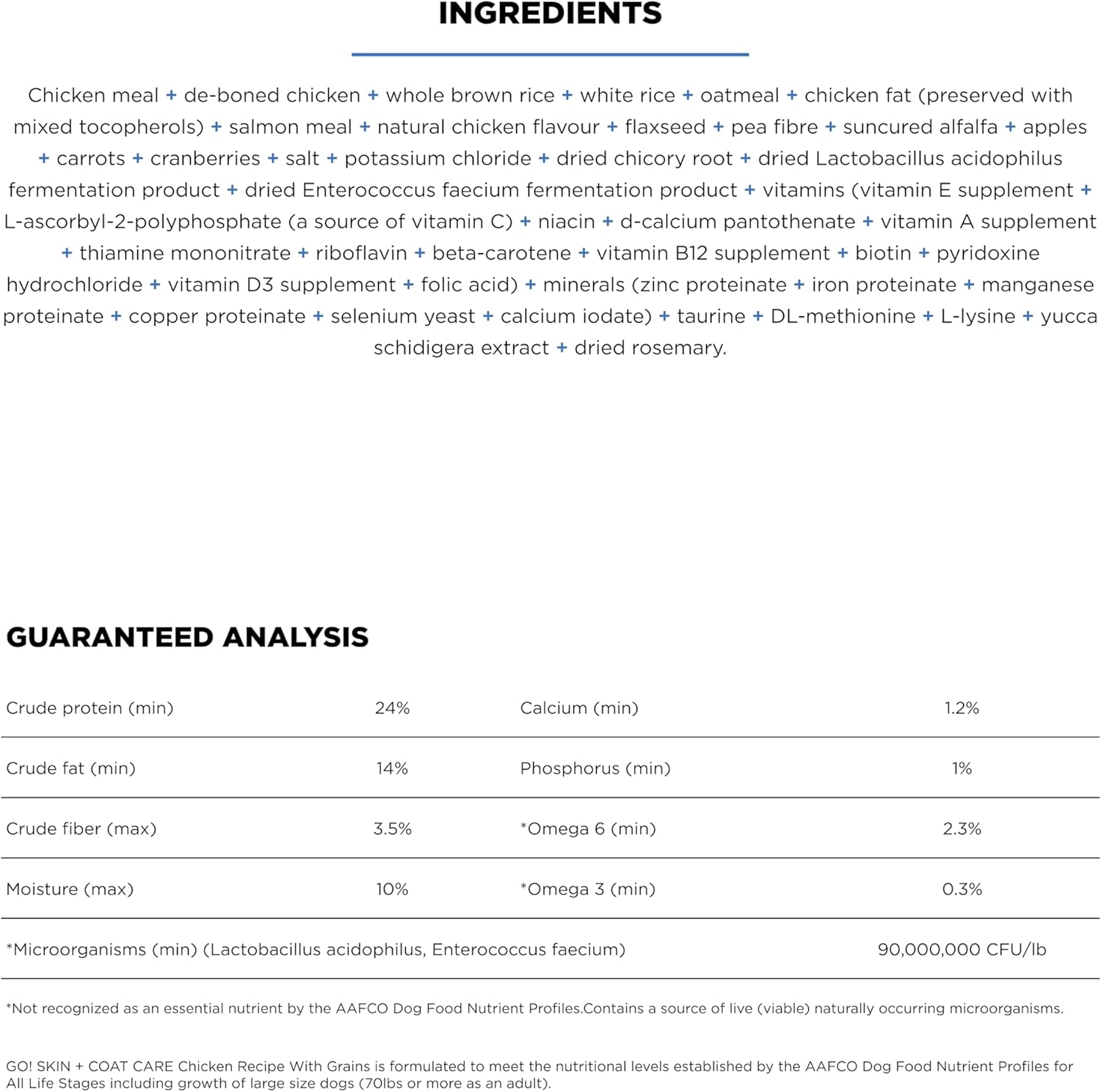 Go! Solutions Skin + Coat Care, Dry Dog Food, Chicken Recipe with Grains, 22 lb Bag