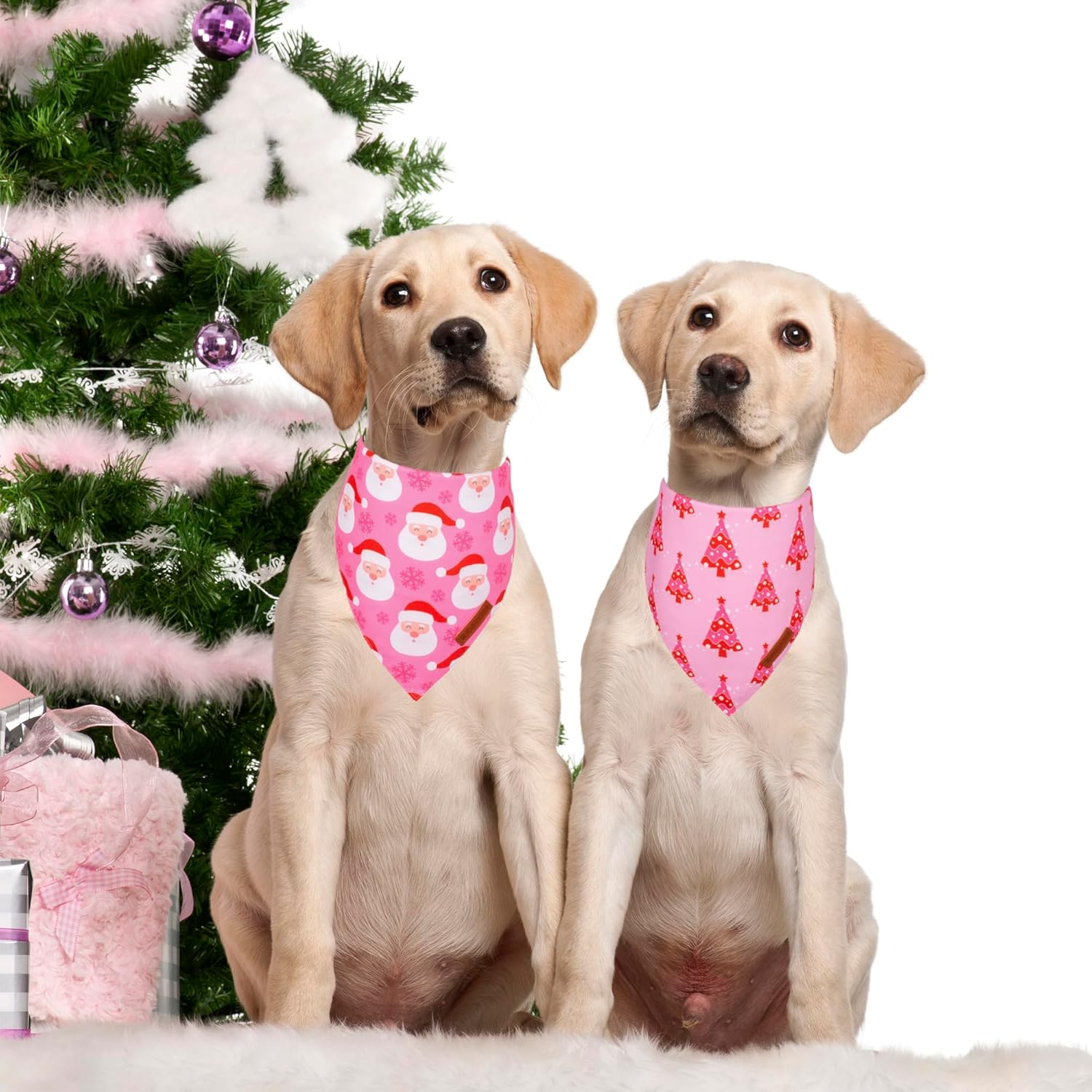 - Package: 1* pink santa dog christmas bandana, 1* pink xmas tree dog bandana christma. We stand behind all of our products. Any questions or concerns, please don't hesitate to contact us.