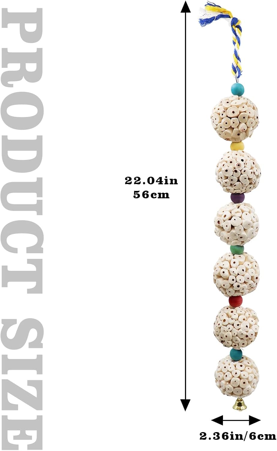 - Compact and Convenient Design: Measuring 2.36 inches in diameter and 22 inches in total length, this bird toy boasts a compact yet engaging design. The colorful cotton rope on top allows easy hanging, ensuring quick and convenient installation and removal.