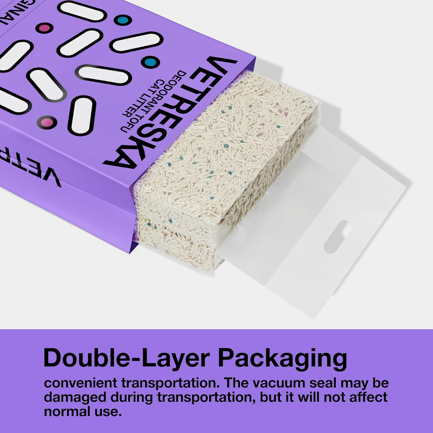 - 【Natural Plant-Based Ingredients】VETRESKA fast clumping tofu cat litter is made from all-natural peas and cornstarch, guaranteed safe ingredients.It can maximize water absorption & deodorization, anti-sticking, dust-free and always keeps air fresh