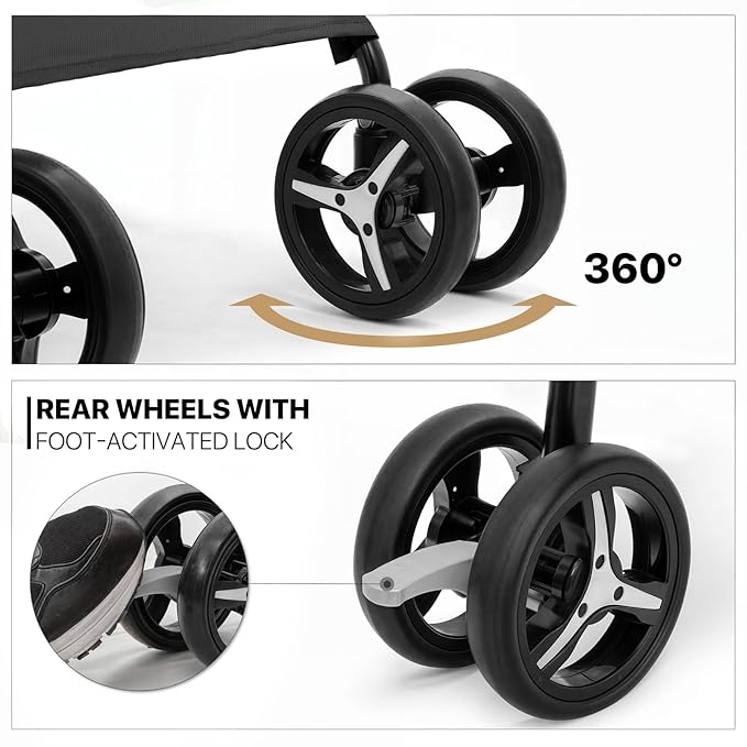 - Safety First - Navigate with confidence using our all-terrain pet stroller, featuring smooth-rolling wheels for all types of surfaces and equipped with dependable rear wheel brakes for your pet's safety and your peace of mind.
