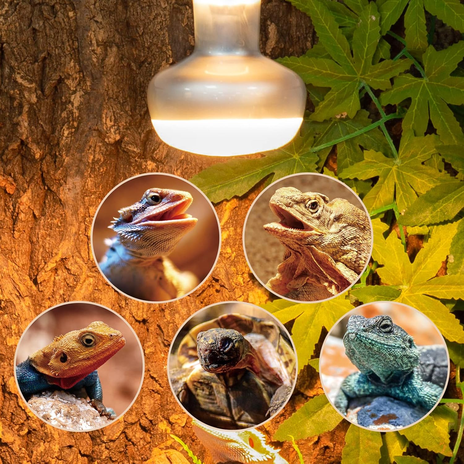- 【Simulating Natural Light】This heat lamp simulates natural sunrise and sunset to achieve even and quick heating and bring your pet back to nature. The reptile heat bulb provides soft heat light and UVA for reptile living, promote the appetite of your pet, create a healthy environment for reptiles, ensure their healthy and natural growth.