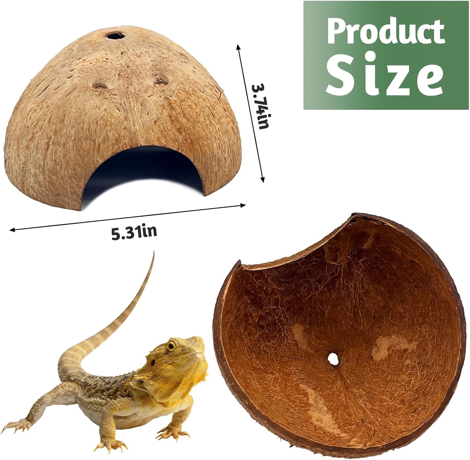 - Spacious interior: The large size of this coconut husk (5.31 x 3.74 inches) offers a cozy and warm environment for your Hermit crab, Spiders, or Lizards