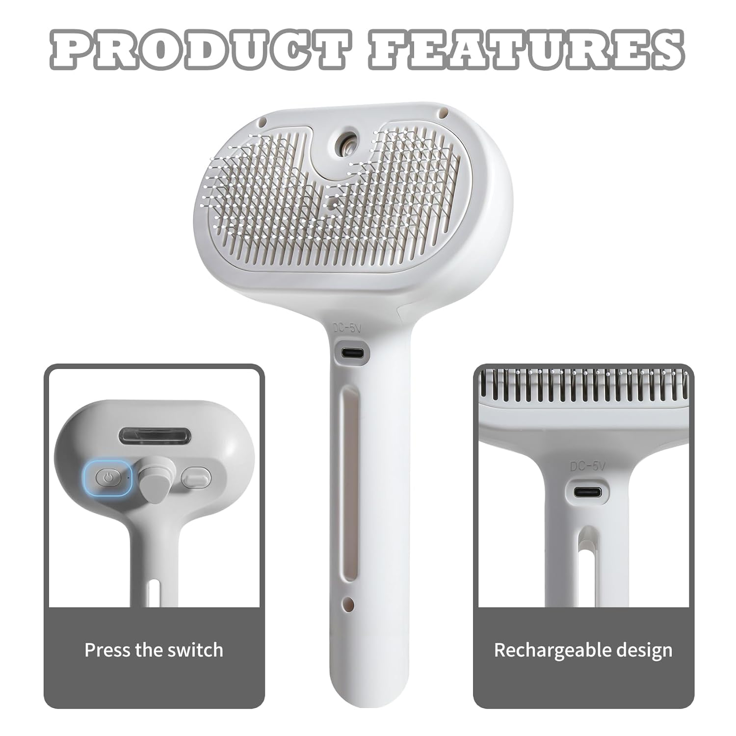 3-in-1 Steam Brush for Cats & Dogs – Hair Removal Comb with One-Click Release & Water Spray – Grooming Brush for Shedding, Long/Short Hair