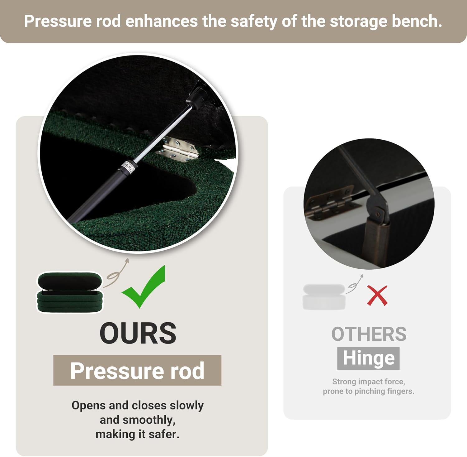 - Safe and Rounded Design : The ottoman bench features a safe and effortless pressure bar design for easy lifting. Its rounded appearance helps prevent injuries to children during play, making it suitable for families with kids.