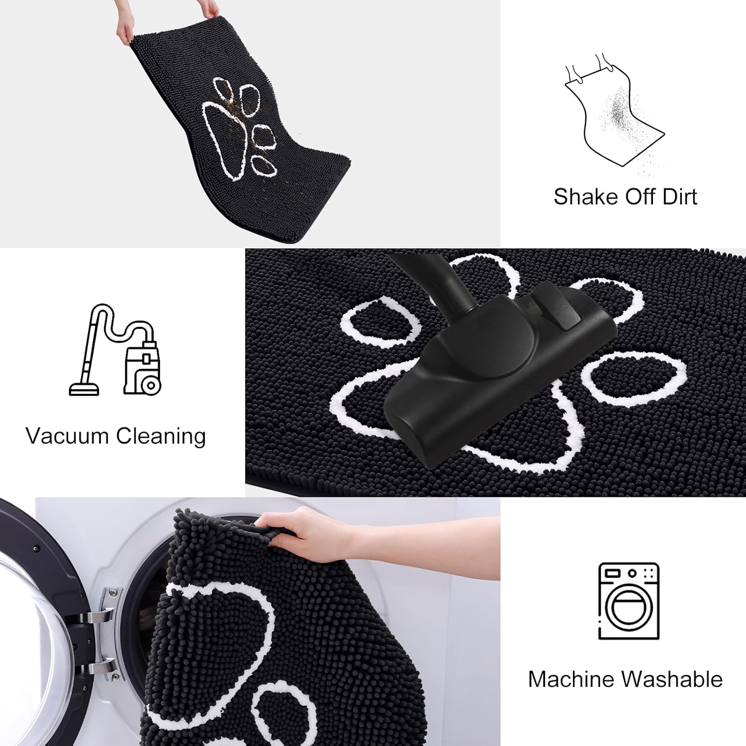 Smiry Dog Door Mat for Muddy Paws, Absorbent Dirt Trapper Non Slip Quick Dry Washable Chenille Mat for Mud Dogs, Entry Rug for Indoor and Outdoor (24x16 Inches, Black)