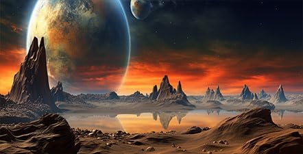 36X24IN Cosmic Aquarium Background, Cool Parallel Space Themed Fish Tank Background, Tropical Desert Terrarium Background with 8 EVA Double-Sided Tape