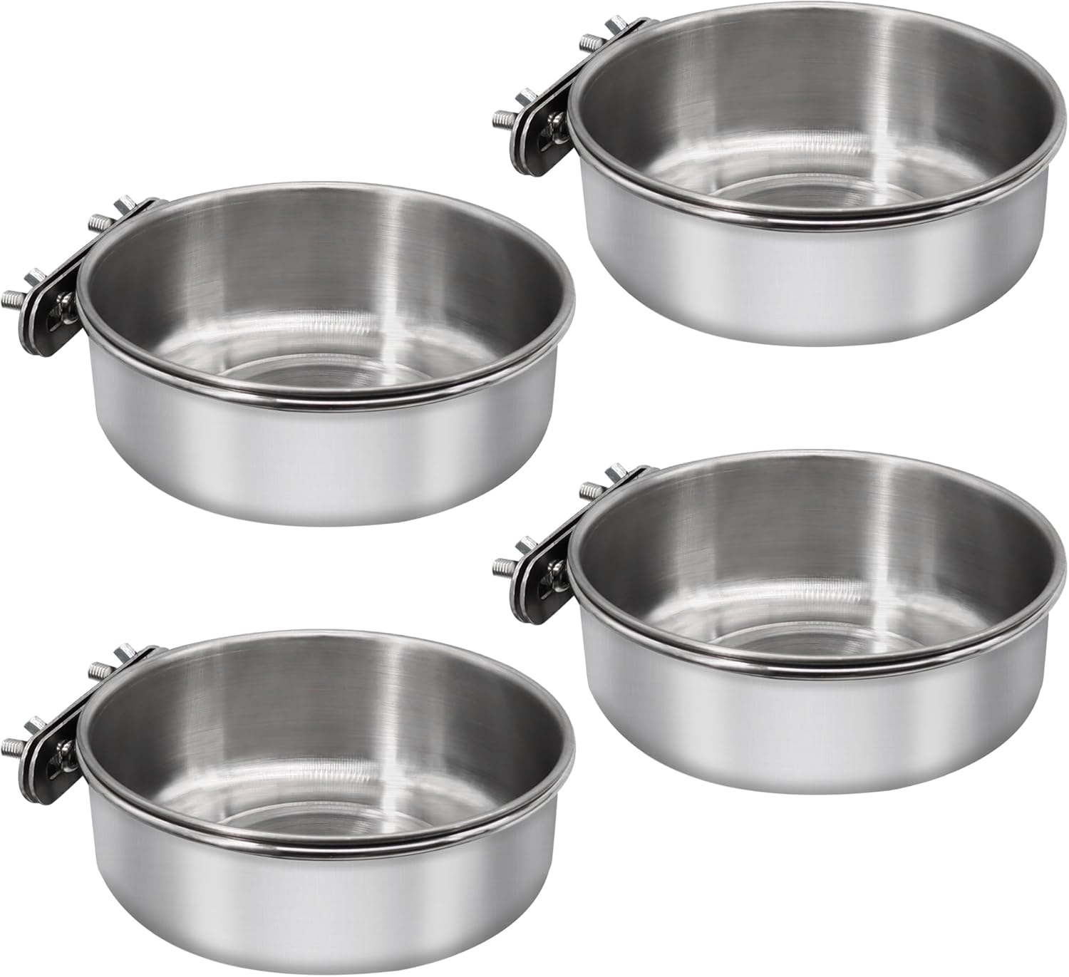 4 Pcs Medium Bird Feeding Dish Cups,Parrot Food Bowl Cage with Clamp Holder Stainless Steel,Birdcage Coop Water Feeder for Cockatiel Parakeet Macaw Finches Lovebirds Small Animals (4 Pack, M)