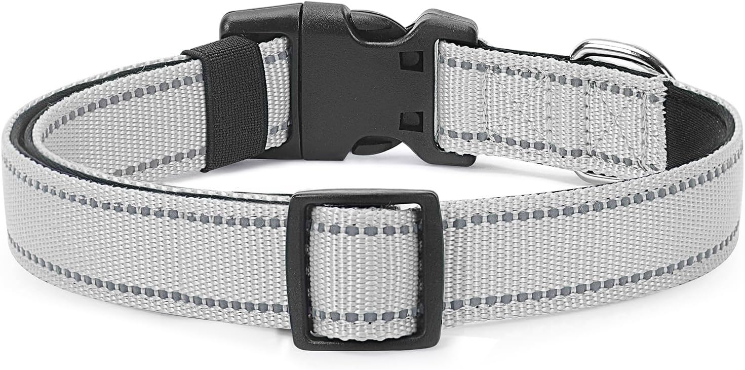 Reflective Dog Collar Padded with Soft Neoprene Breathable Quick Release Basic Dog Collars for Puppy Small Dogs Girl Boy Xs Silver