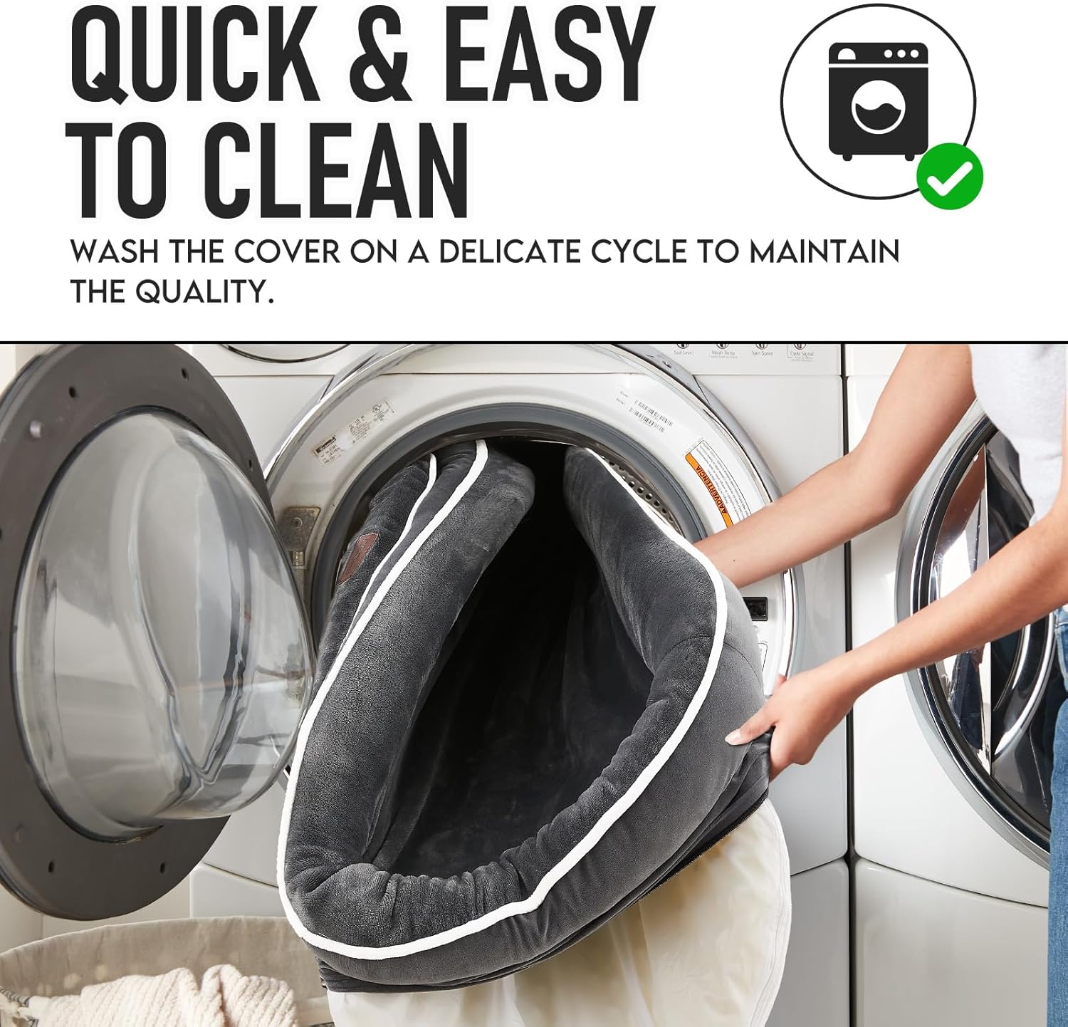 - MACHINE WASHABLE AND WATERPROOF: The removable zip cover is attached to a waterproof membrane that protects the mattress from pet urine and slobber and supports machine washing and low-temperature drying.