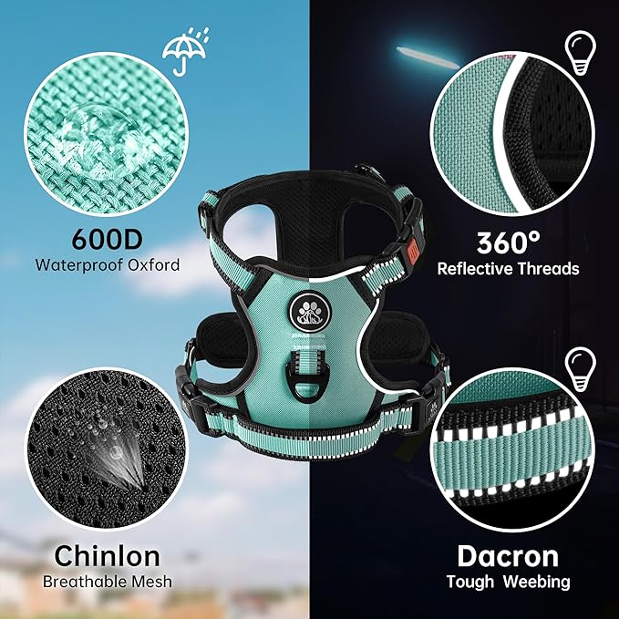 NESTROAD No Pull Dog Harness,Adjustable Oxford Dog Vest Harness with Leash,Reflective No-Choke Pet Harness with Easy Control Soft Handle for Large Dogs(Large,Turquoise)