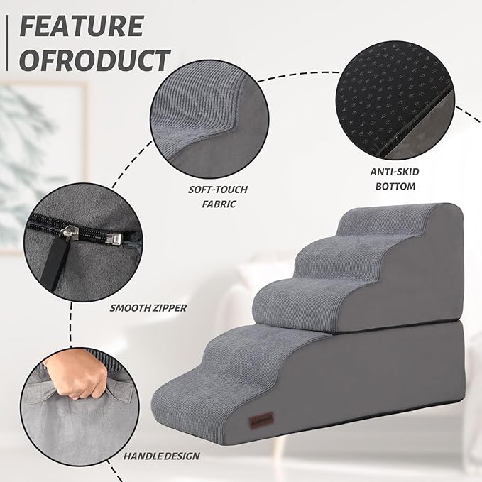 - ANTI-SLIP : Considering the safety of pets, the bottom of the pet stairs is equipped with non-slip silicone paw prints to ensure that your dog can stand and walk steadily during the climbing process. Let pets have enough sense of security