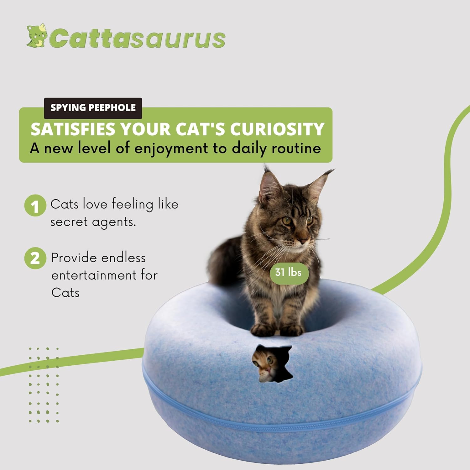 Cattasaurus Peekaboo Cat Cave for Multiple & Large Cats Up to 30-45 Lbs, Scratch Detachable & Washable Tunnel Bed, Comfy Donut Cat Cave (Blue, Jumbo)