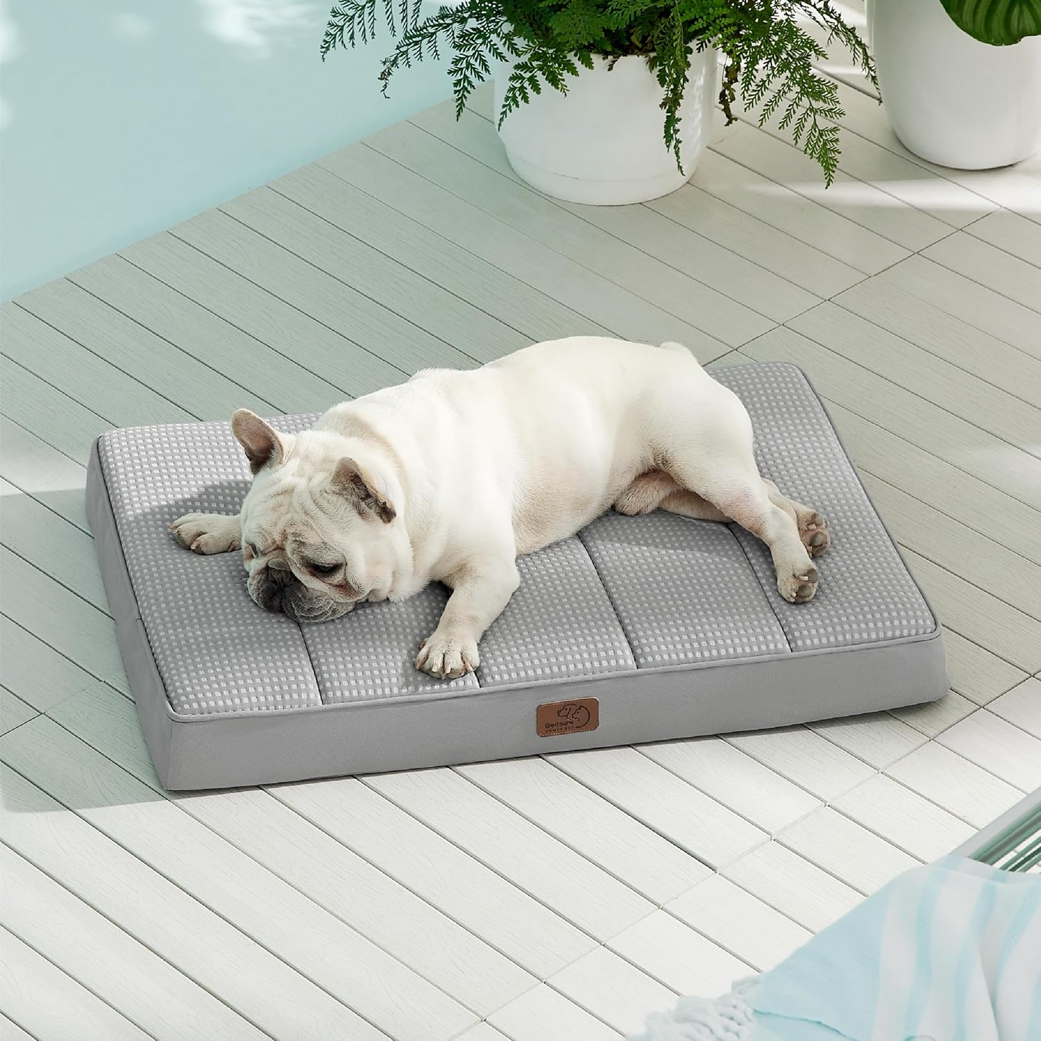 Bedsure Cooling Dog Bed for Medium Dogs - Orthopedic Flat Puppy Beds with Removable Washable Cover, Egg Crate Foam Pet Mat, Suitable for Pet Up to 35 lbs
