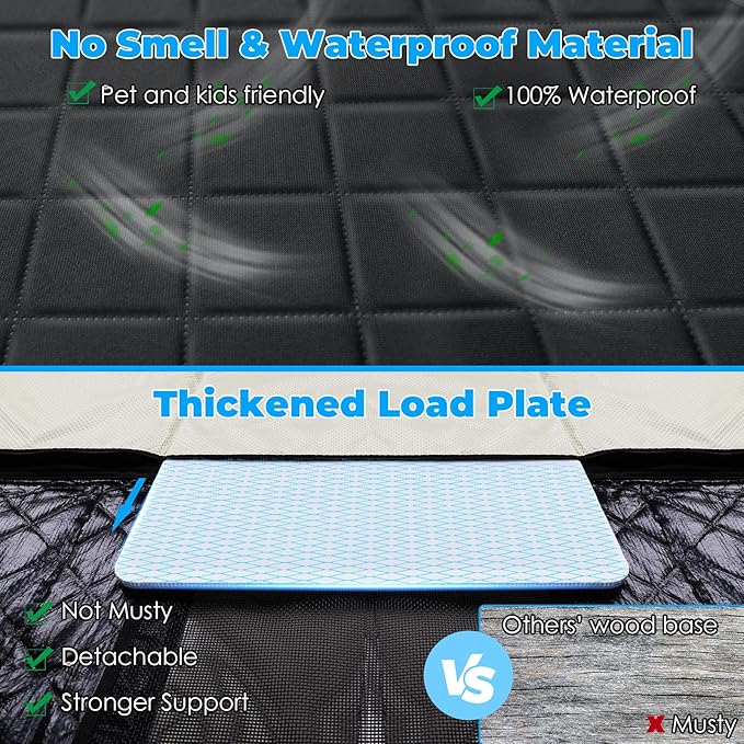 - No Smell Material: The dog car seat cover for back seat without terrible smell is friendly for pets and children. In an enclosed car space, smell-free design is also important to keep you focused and driving safely, but competitors ignore this. The thickened PP hollow board plate is more durable than others' wood base