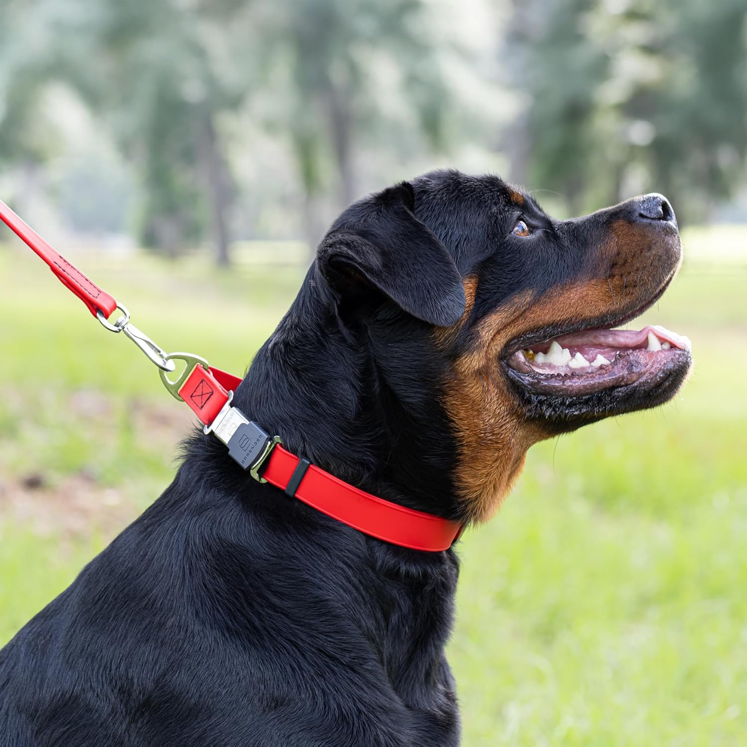 Dogline Biothane Waterproof Dog Collar with Herm Sprenger Stainless Steel Quick Release Buckle – Heavy Duty Tactical Durable Collar for Dogs – Comfortable and Safe Pet Collar, W 3/4" L 12-19", Red
