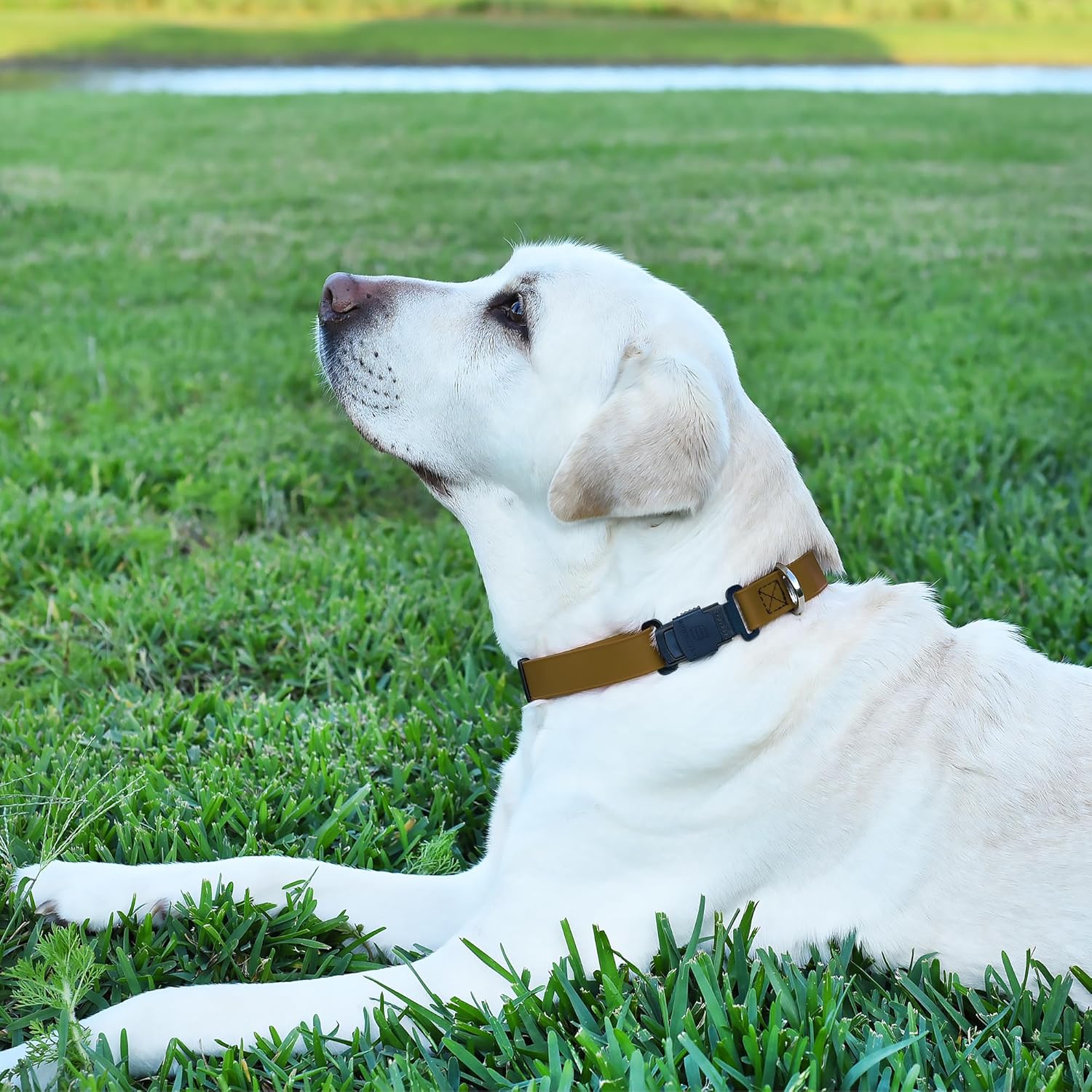 Dogline Biothane Waterproof Dog Collar with Herm Sprenger Black Stainless Steel Quick Release Buckle – Heavy Duty Tactical Durable Collar for Dogs – Comfortable and Safe Pet Collar W3/4" L12-19 Brown
