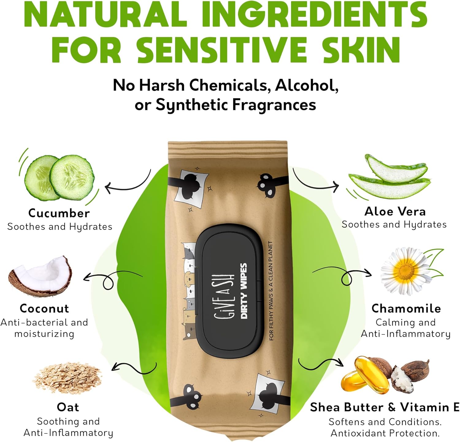 - HYPOALLERGENIC & GENTLE ON SENSITIVE PET SKIN - Made with all-natural soothing Aloe, Oatmeal, Shea Butter & Cucumber. These unscented puppy wipes and cat cleaning wipes are free from harsh chemicals, alcohol, parabens, and artificial fragrances - gentle enough for sensitive skin.
