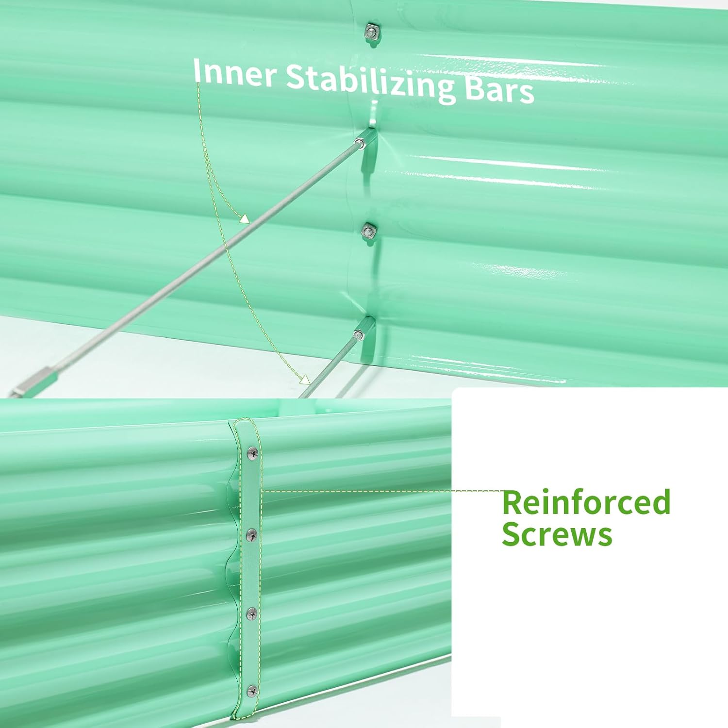 - Stable and Solid Construction: Double card frames on the two sides of the sheet make the raised garden kits more durable and stable, and 4 reinforcing rods make the whole raised garden bed more stable. Never worry about its distortion or collapse and it presents a much more beautiful design.