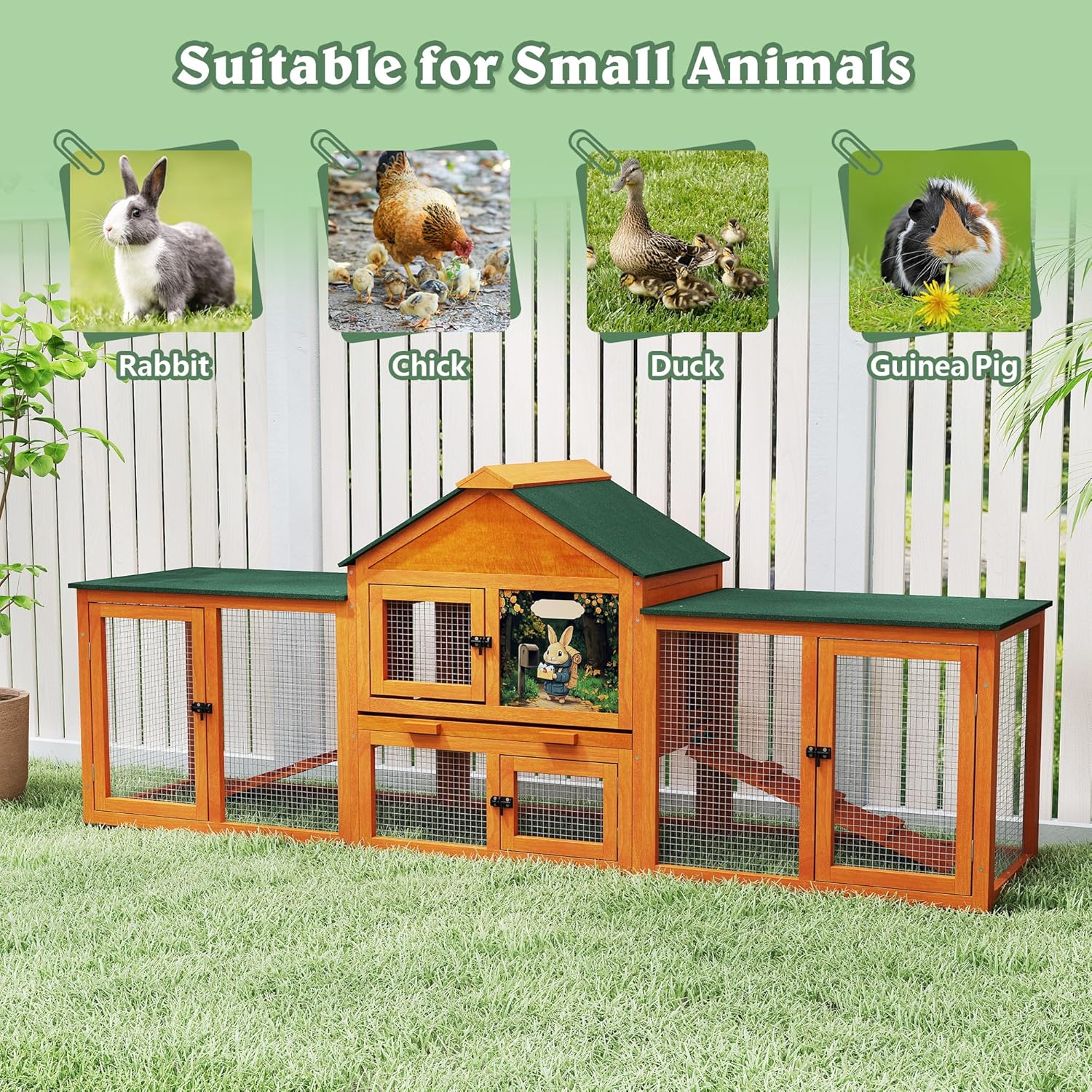- Poultry Home: Rabbit hutch outdoor weatherproof is suitable for a variety of small and medium-sized animals, such as rabbits, bunnies,chickens, guinea pigs, etc., not only to provide them with a large enough activity space, so that they can play and live freely, but also your pet friend's home, you can use the duck houses for outside in the outdoor or indoor yard