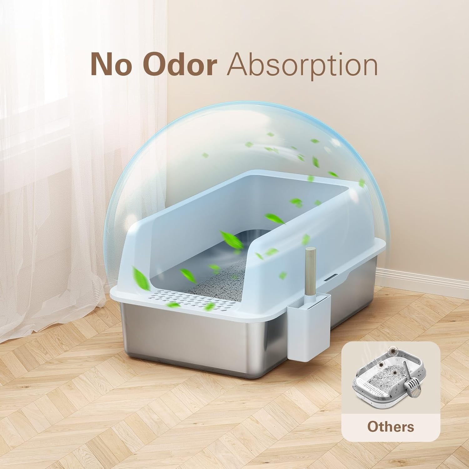 - 【Sturdy Stainless Steel Build】: Constructed from thick stainless steel for added durability, the extra large stainless steel litter cat box is designed to withstand daily use, resisting rust and scratches from cat paws. Its non-porous nature also prevents odors from lingering, extending the lifespan and reducing the need for frequent replacement