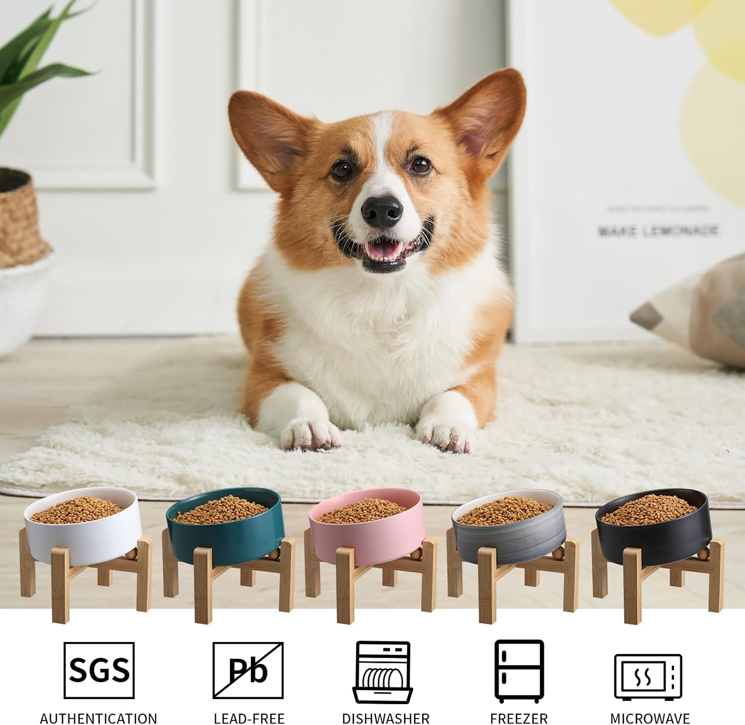 - PERFECT for Medium & Large DOGs - these ceramic pet dishes are perfect for medium and Large sized dog bowls which could provides food or water all day without having to refill constantly. cute & Modern Addggo pet bowl with a bamboo wood stand with a non-slip base, suitable for every home style, especially boho home decor.