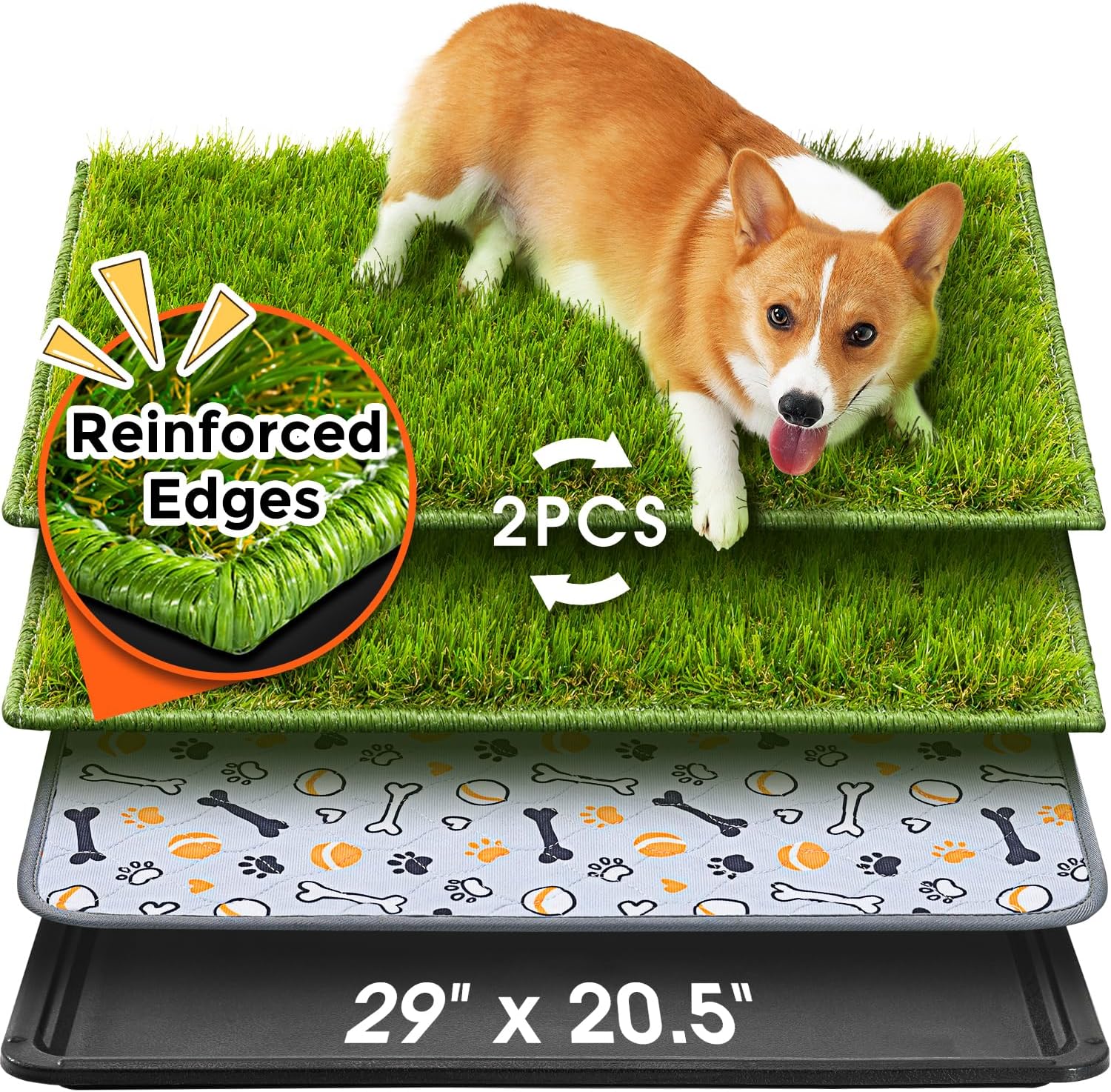 Hompet Dog Grass Pad with Tray Large, 29"x20.5", 2 Reusable Artificial Turf for Dogs Potty, Waterproof Non-Slip Washable Pee Pads, Quickly Absorbency Portable Dog Litter Box for Indoor/Outdoor Use