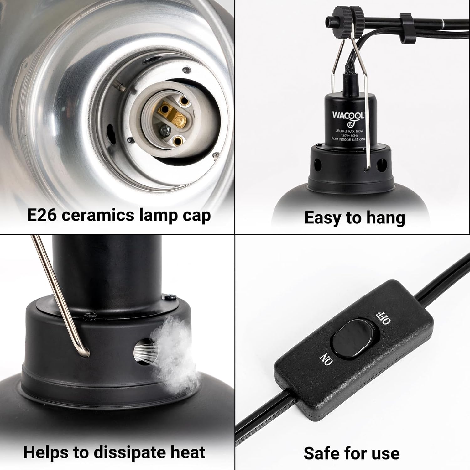 - Duration and Safe Design: The WACOOL TERRA Reptile Light Fixture is designed with durability and safety in mind. Its sturdy construction ensures long-lasting use, while the included hook securely attaches the fixture to various terrarium setups. This ensures the fixture remains stable and safe for your reptile companions.