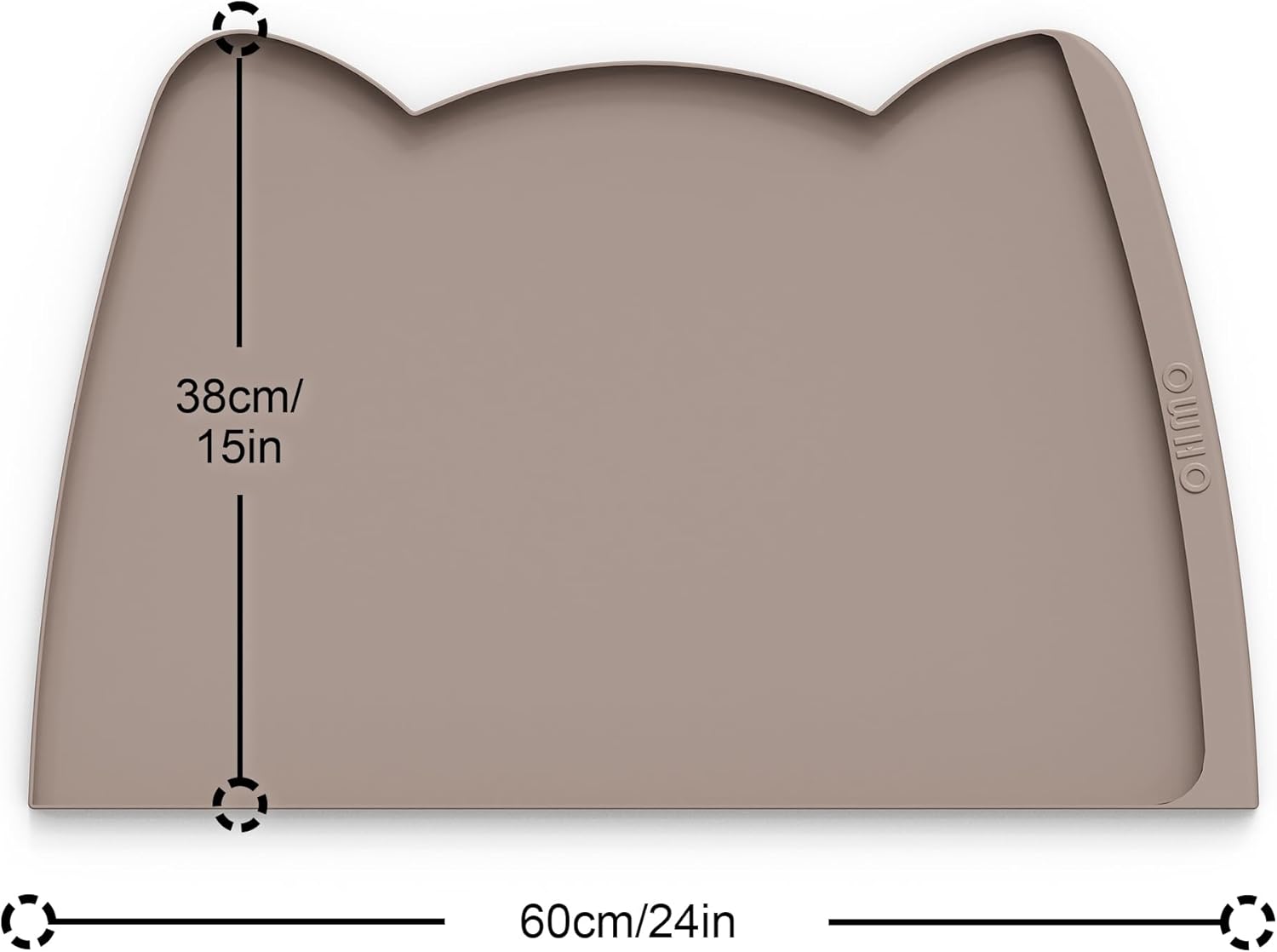 OHMO Dog Food Mat(Beige, 24 * 15'') w/Residue Collection Pocket Silicone Pet Feeding Mat for Floor High Edges Anti Spills Waterproof Cat Water Bowl Tray, Easy Clean Placemat