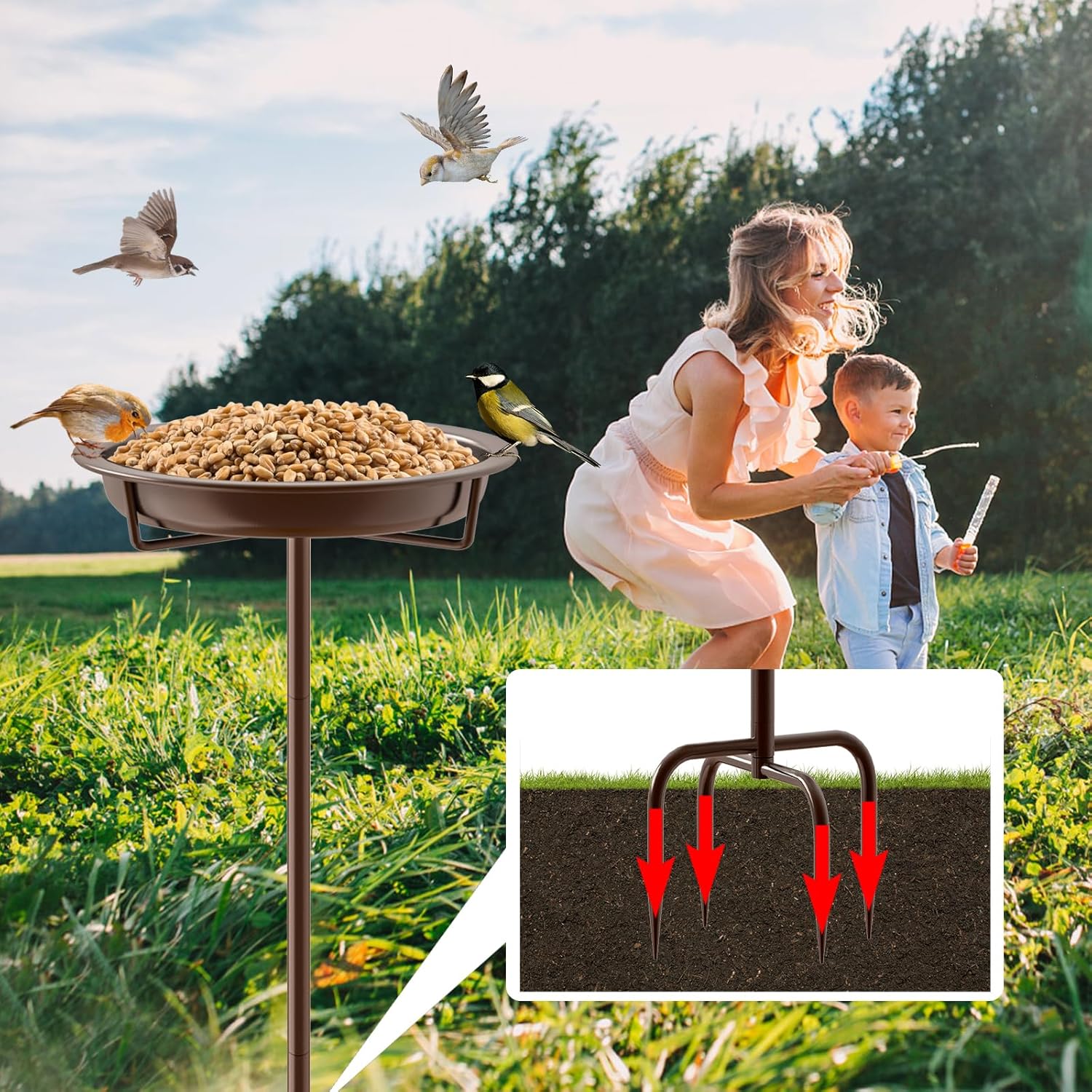 Metal Bird Bath for Outside, 36.2" Height Birdbath Bowl Standing Bird Feeders for Outdoors with 4 Prongs Base Stake, Freestanding Birdfeeders for Garden Yard Lawn Decor (Brown)
