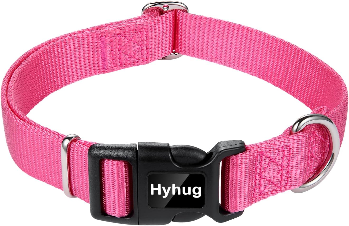 Hyhug Dog Collar with Quick Release Buckle, Nylon Adjustable Sturdy Cute Dog Collars for Large Dogs (Candy Pink, Large)