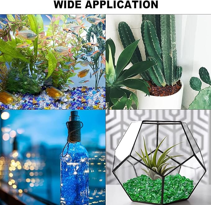 - Features: The glass gemstone is like river gravels, no dye or other methods of artificial coloring is used, never faded. Smooth edges no harm to animals and plants, you can rest assured that using. NB the glass pebbles are 0.93LB Heavy Enough BUT SMALL BAG