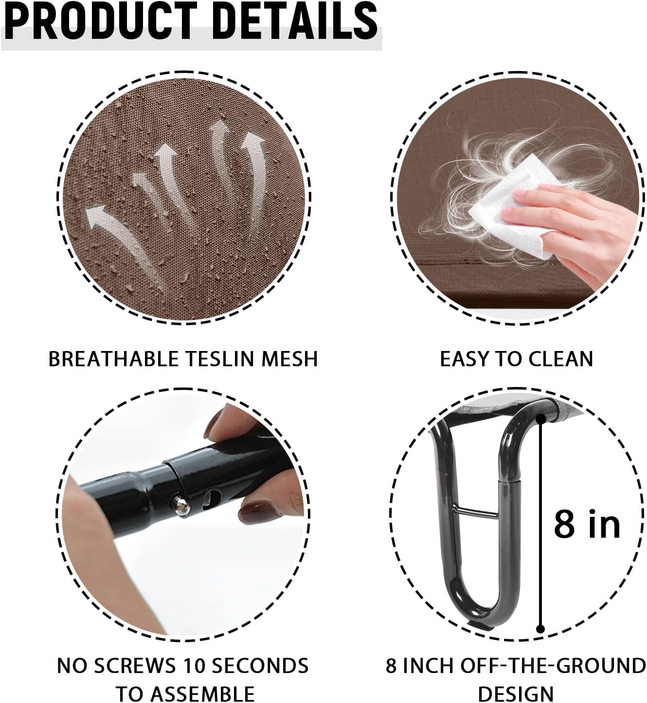 pettycare Elevated Outdoor Dog Bed - Raised Cots Beds for Small Dogs, Waterproof Pet Hommock Easy to Assemble, Cooling with Teslin Mesh, Durable, Non Slip, Indoor & Outdoor, Up to 35 lbs, Brown