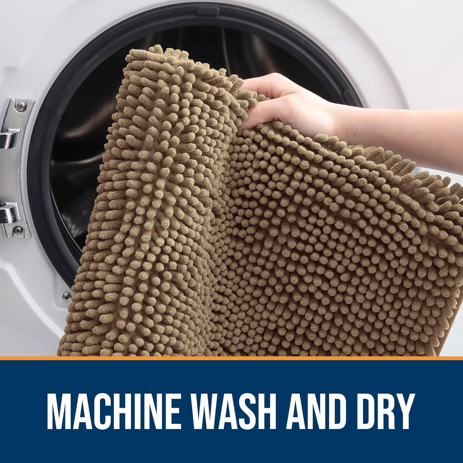 OLANLY Dog Door Mat for Muddy Paws 30x20, Absorbs Moisture and Dirt, Absorbent Non-Slip Washable Doormat, Quick Dry Chenille Mud Mat for Dogs, Entry Indoor Entryway Carpet for Inside Floor, Tan