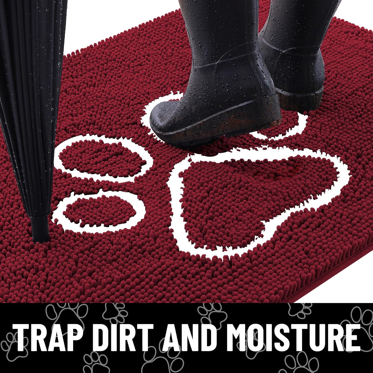 Smiry Dog Door Mat for Muddy Paws, Absorbent Dirt Trapper Non Slip Quick Dry Washable Chenille Mat for Mud Dogs, Entry Rug for Indoor and Outdoor (24x16 Inches, Burgundy)