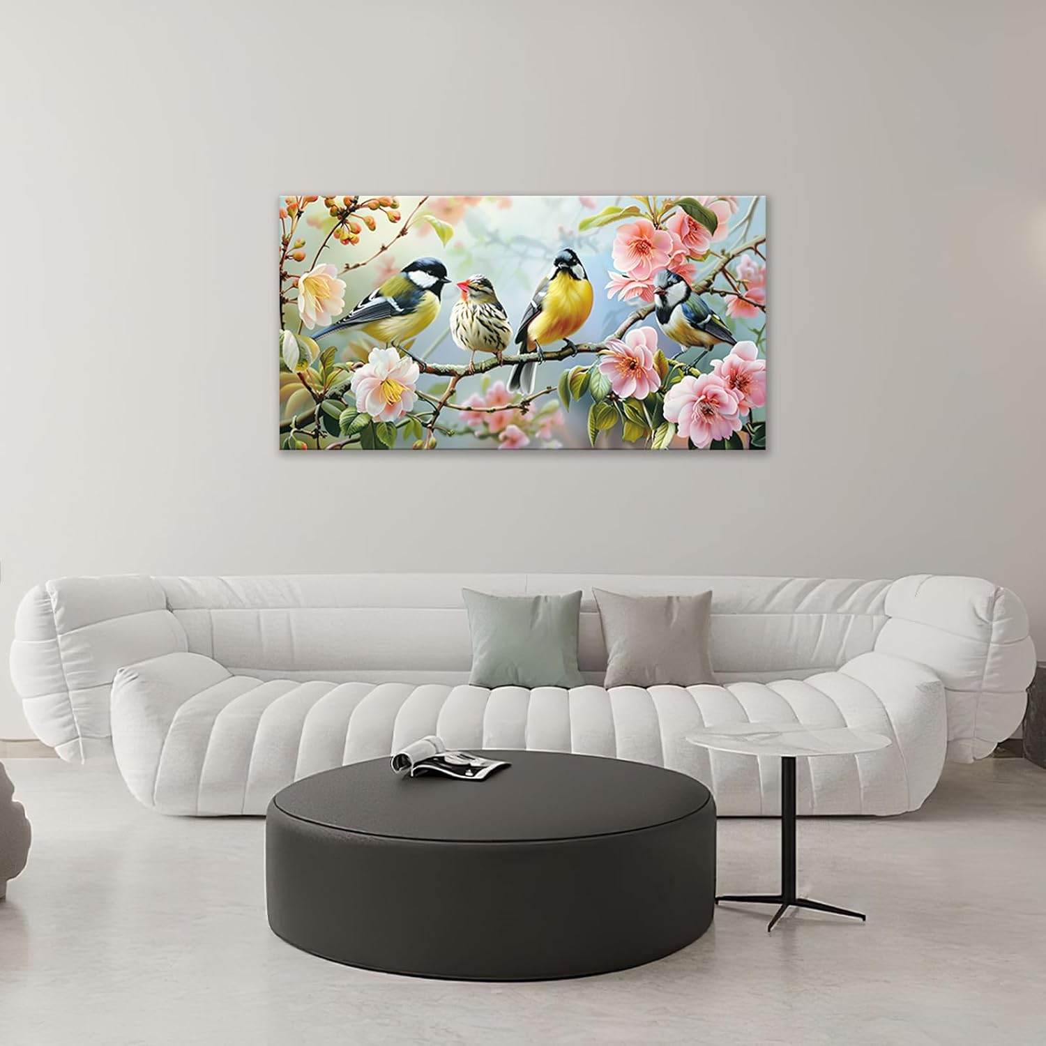 Large Birds Wall Art for Living Room Spring Flower Nature Art Big Space Size Framed Bedroom Office Canvas Prints Pictures Painting Artwork Office Bedroom Home Decor 60"x30"