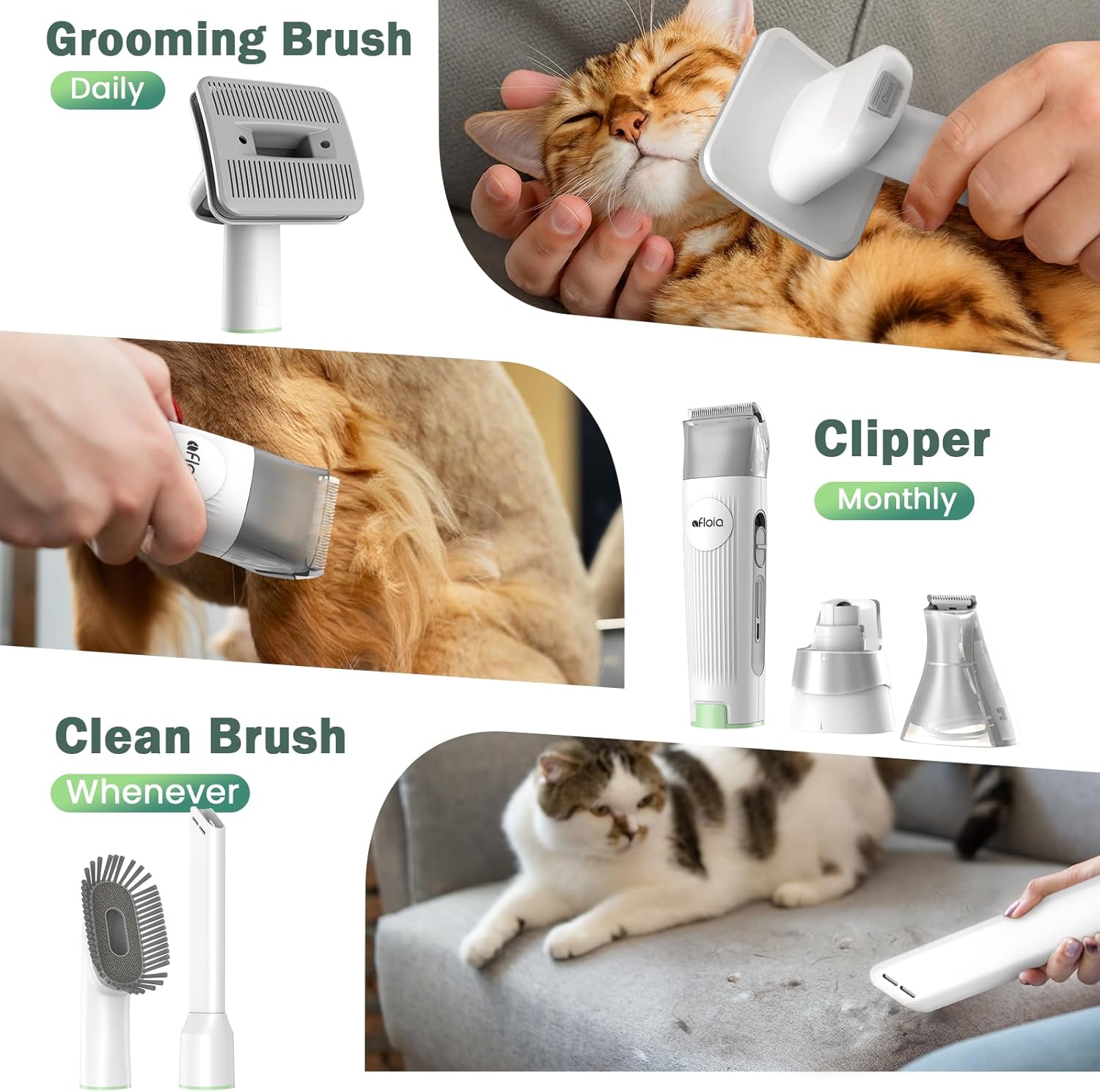 Afloia 6-in-1 Dog Grooming Kit, Pet Grooming Vacuum for Shedding, Dog Hair Vacuum with Clipper Nail Trimmer Grinder, Pet Brush Groomer at Home, Low Noise Cats Hair Remover, 1.5L Dust Cup, Green