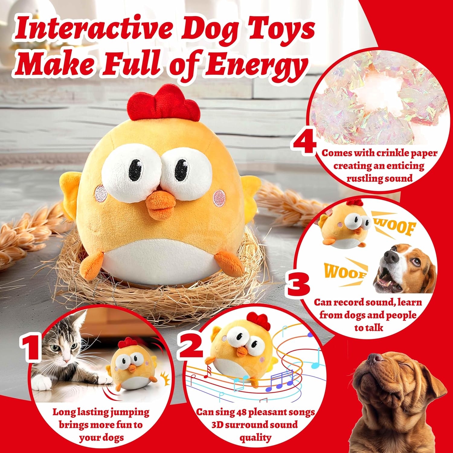Interactive Dog Toys, Squeaky Moving Ball Toy with Jumping & Music Modes, Rechargeable Plush Chew Toys for Small/Medium/Large Dogs to Keep Puppy Busy Pet Toys (Chick)