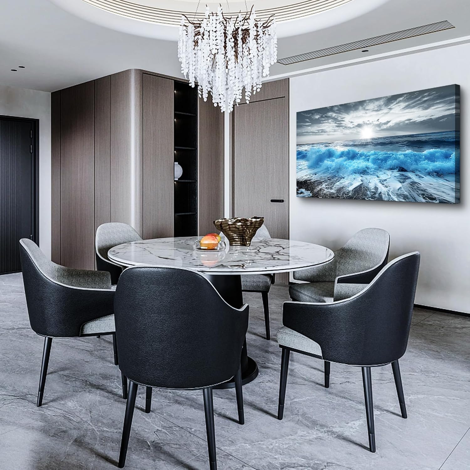 Lapremoly Large Canvas Wall Decor For Office Framed Wall Art For Living Room Blue Beach Painting Ocean Sea Waves Wall Pictures Bedroom Home Decorations Prints Posters Mural Artwork Ready to hang