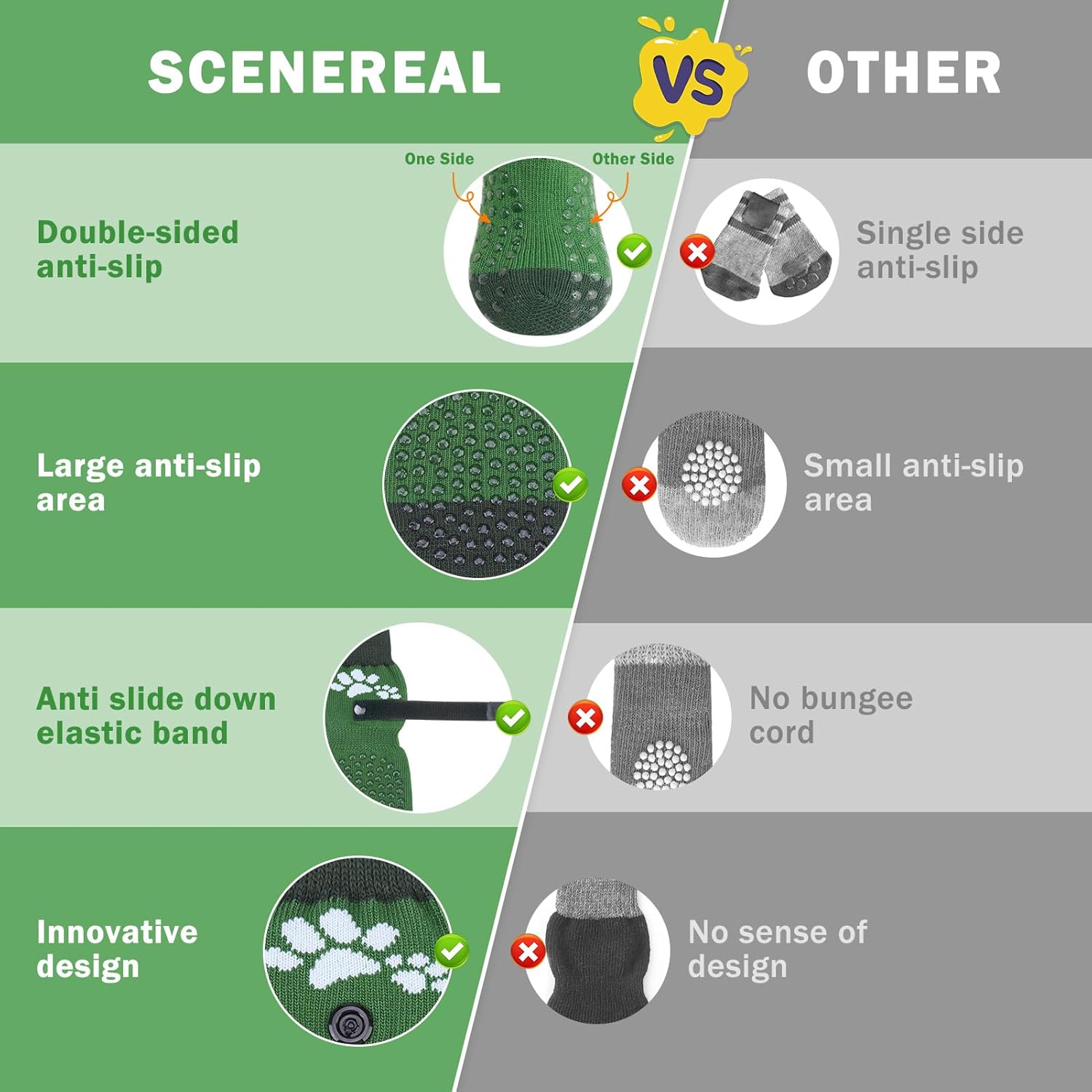 SCENEREAL Anti Slip Dog Sock to Prevent Licking Paws for Hardwood Floors, Boots & Paw Protector Shoes for Hot/Cold Pavement with Grippers, Double Sides Grips for Small Medium Large Senior Dogs, M