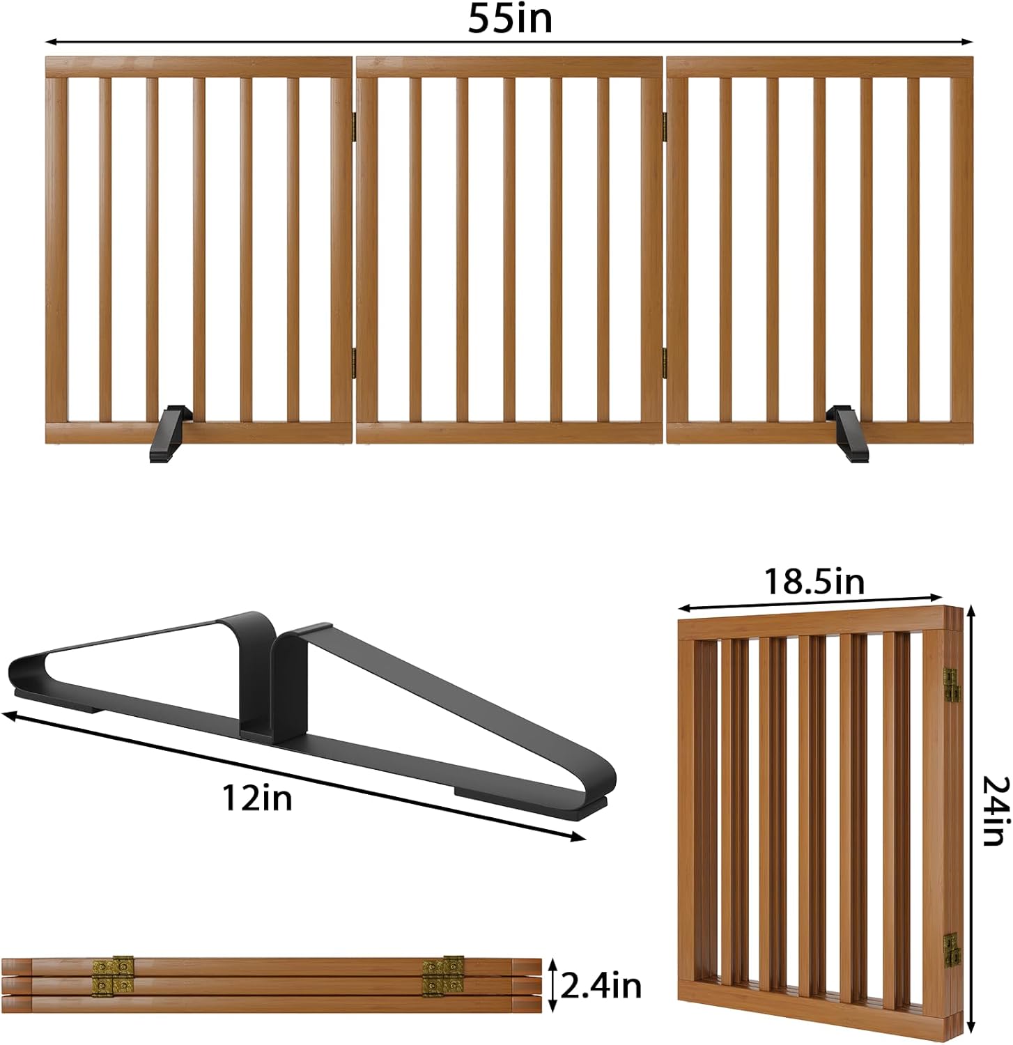- STYLISH DOG GATE FREESTANDING:Made of solid bamboo, the folding dog gate has a sleek modern style and a chic walnut finish that is sure to complement any decor. this stylish pet gates for dogs will block kitchen doorways, bedroom doorways, front doorways, hallways and staircases in your home and looks great with your modern home furniture