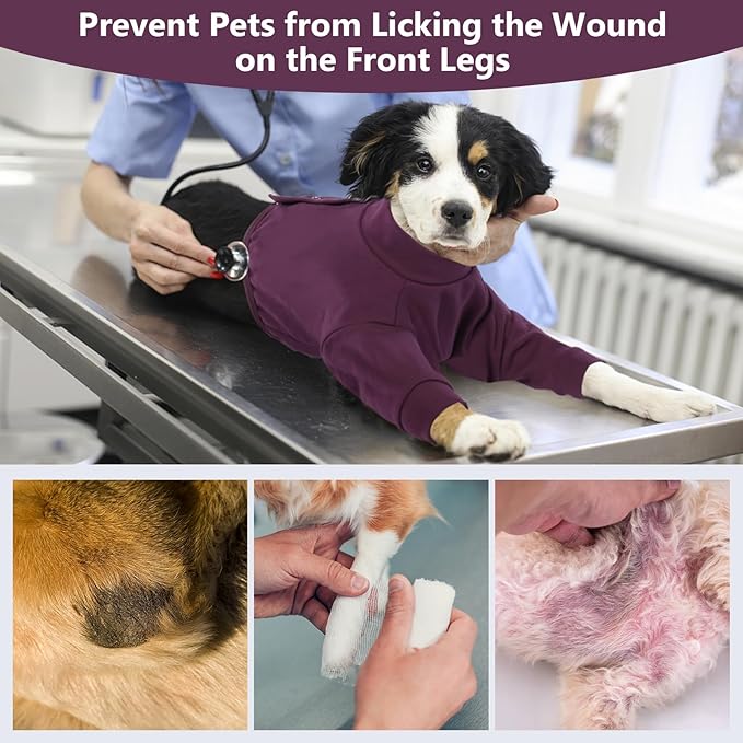 - PROTECT DOG LEGS:The dog recovery suit front legs can prevent pets from licking leg wounds, rashes, hot spots, allergies and infection. The dog sleeve for female and male pet ensures your dog's body balanced and stable, and the recovery suit for dogs prevents any damage to the dog's joints.