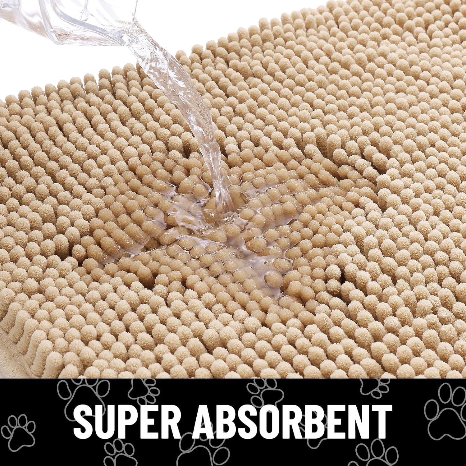 Smiry Dog Door Mat for Muddy Paws, Absorbent Dirt Trapper Non Slip Quick Dry Washable Chenille Mat for Mud Dogs, Entry Rug for Indoor and Outdoor (70x24 Inches, Beige)