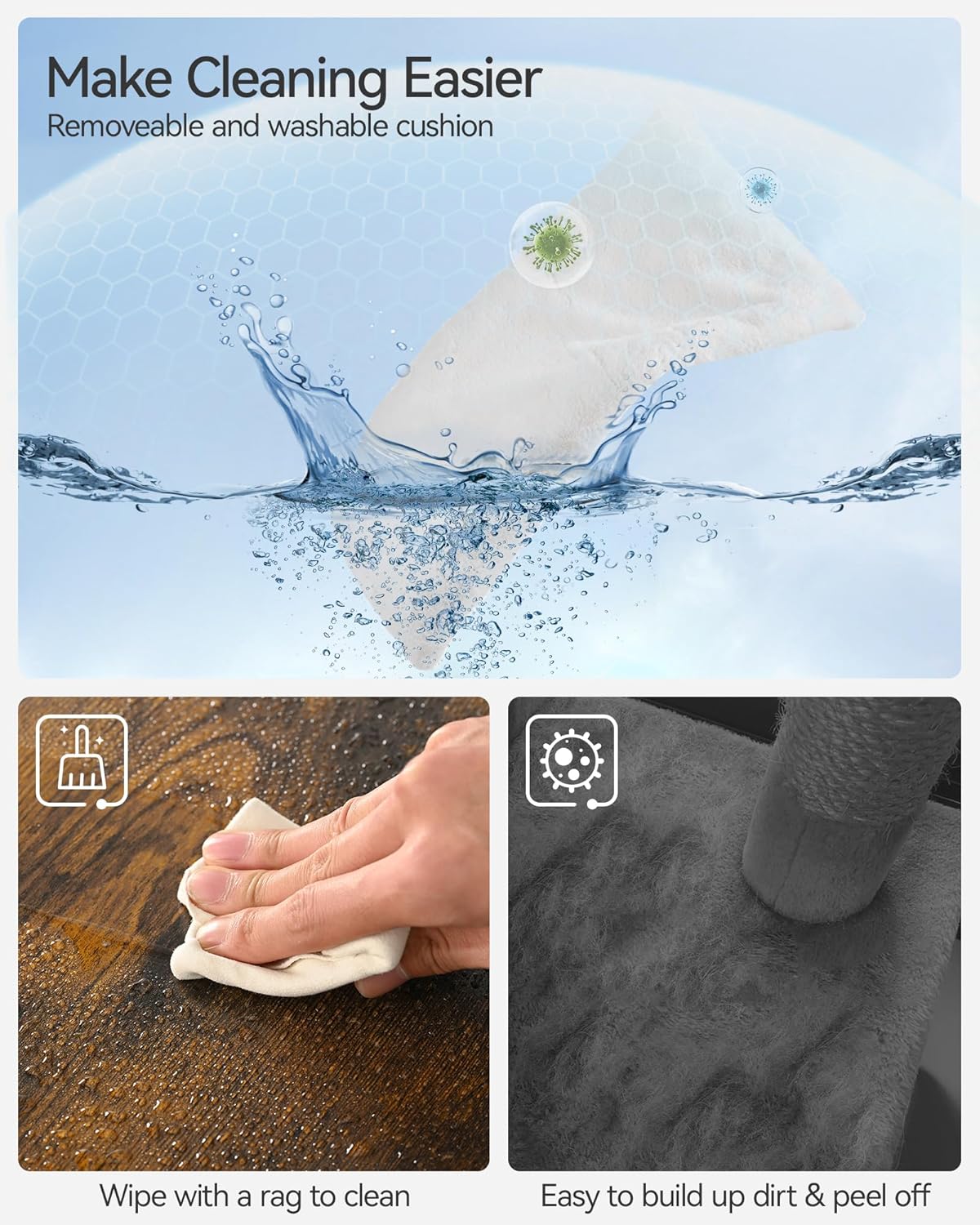 - Easy Maintenance: These cat condo are very easy to clean! During daily care, wipe the surface with a cloth, and use a comb or lint roller to brush the cushions. When thoroughly cleaning, the cushions can be removed for washing.